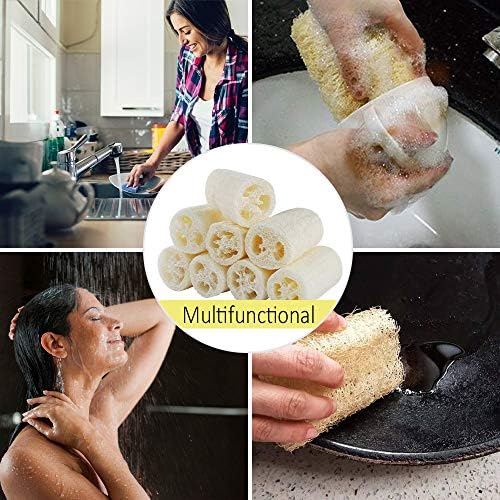 Cantidad y tamaño: 8 piezas de esponja vegetal para baño, 6*10 cm. Puede usar esponjas de esponja baño con gel baño o jabón en barra para limpiar la piel muerta. También puedes lavar los platos con esponjas de esponja vegetal.