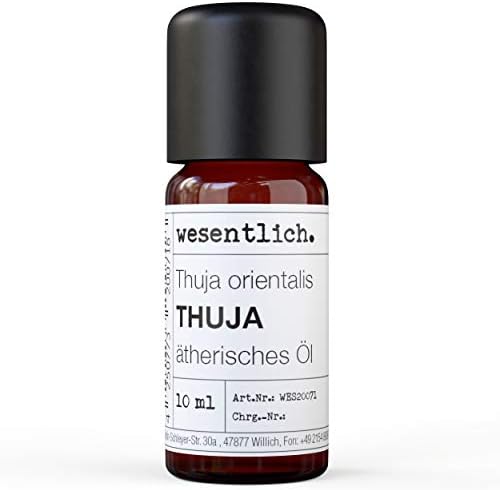 Aceite de Thuja (nombre botánico: THUJA ORIENTALIS) procedente de Corea. La extracción se realiza por destilación con vapor de agua de las ramas.