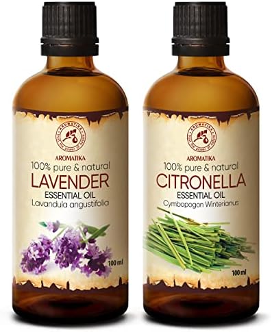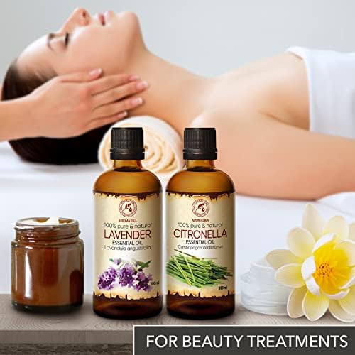 Aceite Esencial de Lavanda – Aceite Esencial de Citronela 2x100ml – Lavandula Angustifolia – Cymbopogon Winterianus – Aceite de Citronela para sauna – Aceite de Lavanda para el buen humor
