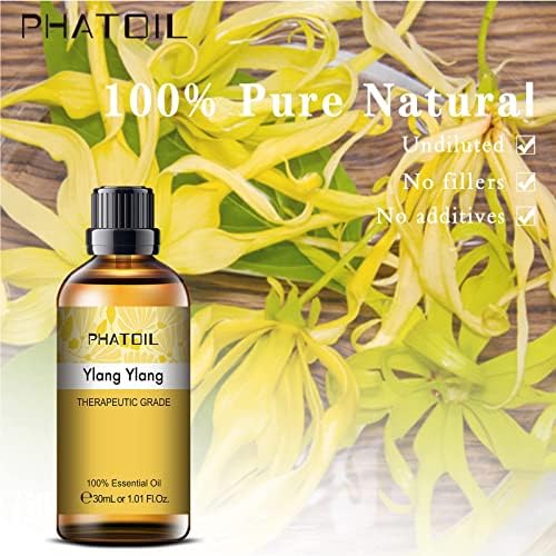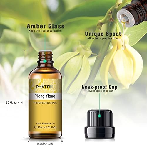【DISEÑO DEL SELLO】 Los aceites esenciales PHATOIL Ylang Ylang se envasan en un frasco ámbar de 30 ml resistente a los rayos UV; El diseño exclusivo de boca estrecha de la botella tiene un sello superior y evita la volatilización.