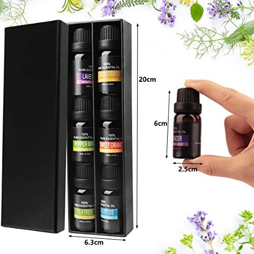 AIDUE Top 6 botellas de aceites esenciales 100% puros: lavanda, árbol de té, eucalipto, limón, naranja dulce, menta