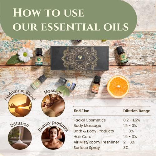 La más alta calidad que te merece: Hemos imaginado que nuestros clientes prefieren llamada calidad, hay muchos conjuntos baratos aceites esenciales por ahí, pero no son aceites esenciales puros y normalmente fueron sintetizados o mezclados con productos químicos nocivos. En este set hemos incluido seis aceites esenciales de 10 ml, orgánicos certificados y de calidad superior.