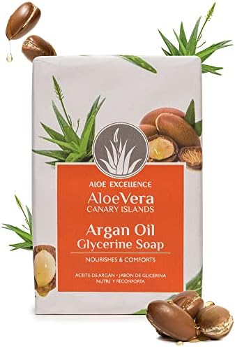 ALOE EXCELENCIA – Jabón de Glicerina de Aloe Vera con Aceite de Argán | 100% natural, sin Ingredientes Perjudicales | Jabón de Manos para Calmar, Hidratar y Proteger tu piel | Pastillas, 100g