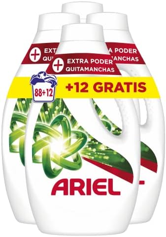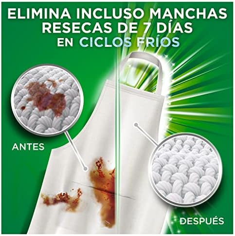 Descubre el detergente líquido para lavadora Ariel +Extra Poder Quitamanchas, nuestro mejor detergente líquido Ariel, que te ofrece la limpieza excepcional de Ariel y, además, elimina las manchas adicionales. El detergente líquido Ariel +Extra Power Quitamanchas elimina incluso las manchas secas de 7 días (en comparación con el terginte líquido Ariel Original) y proporciona resultados impecables en climas fríos. Además, el detergente líquido Ariel viene en un envase reciclable. También puedes usar el detergente liquido Ariel +Extra Poder Quitamanchas para pretrata las manchas con el tapón verde y, a colocar la ropa en la lavadora. Para obtener mejores resultados, introduzca el tapón dosificador con el detergente en el tambor de la lavadora. Por razones medioambientales, las botellas no tienen tapón dosificador, pero puedes pedirlas gratis en el sitio web ariel.info.
