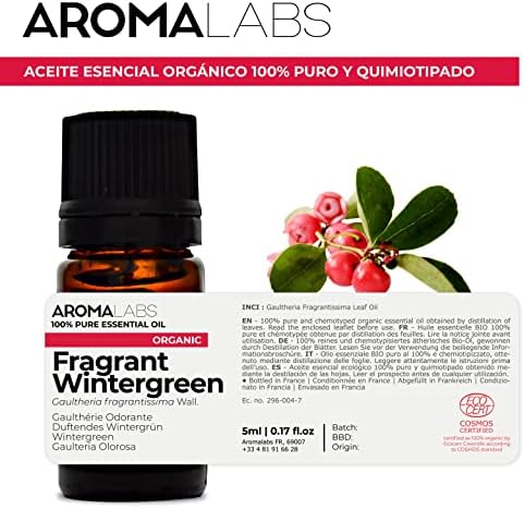 Aceite esencial de Gaulteria Olorosa 100% Natural y Bio, fruta de cultivo ecológico, certificado Ecocert (FR-BIO-01). Análisis cromatográfico efectivo por nuestros laboratorios certificados. Esto significa que este aceite esencial se prueba en el laboratorio antes de ser envasado por nosotros. El propósito de esta maniobra es asegurar que las moléculas contengan suficientes moléculas para ser efectivas. De hecho, un aceite esencial no tendrá el mismo poder dependiendo de su carné de identidad molecular. Aroma Labs se compromete a ofrecer solo aceites esenciales de alta calidad y alta eficiencia. Aroma Labs es una marca francesa preocupada por respetar tu salud y la salud del planeta. Ingredientes Aceite esencial garantizado 100% puro, natural, sin cortar, ORGÁNICO garantizado sin pesticidas. Advertencia de seguridad Un aceite esencial es un producto que debe usarse con cuidado. Siempre consulte a un médico si tiene alguna duda sobre el uso de un aceite esencial o si está tamando medicamentos al miso tiempo. Uso no recomendado para mujeres embarazadas y lactantes, niños menores de 6 años, personas con epilepsia o asma. No aplicar aceite esencial en las mucosas (ojos, oídos, nariz, etc.). Realice siempre la prueba de alergia antes de usar un aceite esencial: aplique 2 gotas en la cavidad del codo y espere 48 horas. Respete las precauciones de uso, las vías de uso, las dosis prescritas y las duraciones de uso.