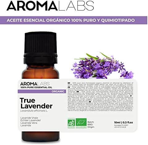 Aceite esencial de Lavanda 100% Natural y Bio, fruto de agricultura ecológica, certificado por Ecocert (FR-BIO-01). Análisis cromatográfico efectivo por nuestros laboratorios certificados. Esto significa que este aceite esencial se prueba en el laboratorio antes de ser envasado por nosotros. El propósito de esta maniobra es asegurar que las moléculas contengan suficientes moléculas para ser efectivas. De hecho, un aceite esencial no tendrá el mismo poder dependiendo de su carné de identidad molecular. Aroma Labs se compromete a ofrecer solo aceites esenciales de alta calidad y alta eficiencia. Aroma Labs es una marca francesa preocupada por respetar tu salud y la salud del planeta. Ingredientes Aceite esencial garantizado 100% puro, natural, sin cortar, ORGÁNICO garantizado sin pesticidas. Advertencia de seguridad Un aceite esencial es un producto que debe usarse con cuidado. Siempre consulte a un médico si tiene alguna duda sobre el uso de un aceite esencial o si está tamando medicamentos al miso tiempo. Uso no recomendado para mujeres embarazadas y lactantes, niños menores de 6 años, personas con epilepsia o asma. No aplicar aceite esencial en las mucosas (ojos, oídos, nariz, etc.). Realice siempre la prueba de alergia antes de usar un aceite esencial: aplique 2 gotas en la cavidad del codo y espere 48 horas. Respete las precauciones de uso, las vías de uso, las dosis prescritas y las duraciones de uso.