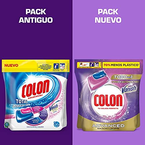 Las cápsulas para lavadora Colon Vanish Advanced ofrecen el mejor poder quitamanchas para la ropa gracias a los agentes quitamanchas de Vanish incorporados. Además, son efectivos en agua fría y ciclos cortos y dejan una agradable fragancia en tu ropa. Disfruta de una limpieza profunda en tu ropa gracias al poder de Colon y Vanish.