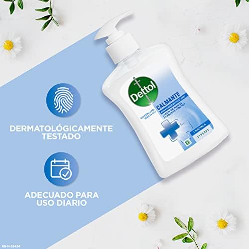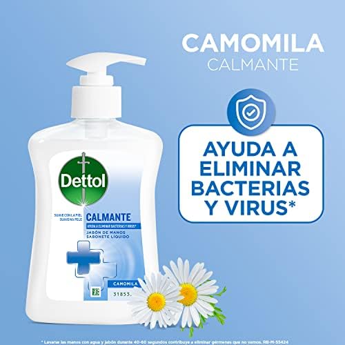Ayuda a eliminar bacterias y virus con el jabon de manos de Dettol Manzanilla. Suave con la piel y dermatologicamente testado. Lavarse las manos con agua y jabón durante 40-60 segundos contribuye a eliminar gérmenes que no vemos. Precauciones: Solo para uso externo. Manténgase fuera del alcance de los niños a menos que sea bajo la supervisión de un adulto. Evitar contacto visual. En caso de contacto con los ojos, lavar inmediata y abundantemente con agua. Si la irritación persiste, consulte a un médico. Mantener la temperatura ambiente. No uso para niños menores de 3 años.