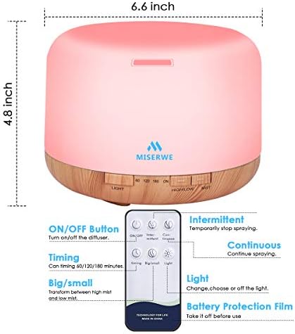 【Operación remota】Nuestro difusor está equipado con un control remoto inalámbrico único, interruptor ajustable, tamaño de niebla, tiempo, luz. Le permite disfrutar de un sueño tranquilo sin tener que levantarse de la cama para encender la máquina.
