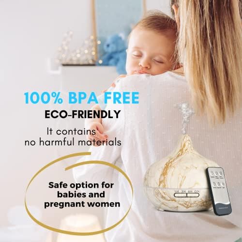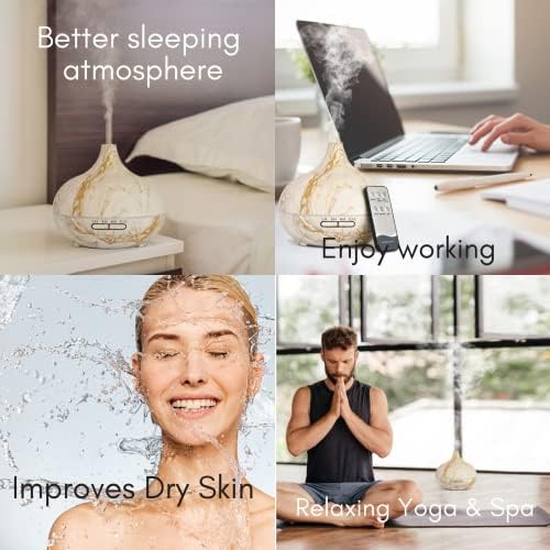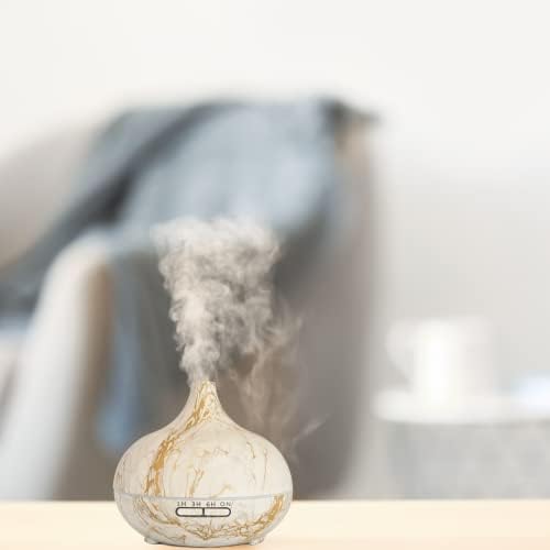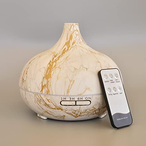Difusor de Aromas de Aceites Esenciales Mármol Blanco y Oro | Humidificador Aromaterapia 550ml | 7 Luces LED | para Dormitorio Oficina Casa Habitación | Control Remoto