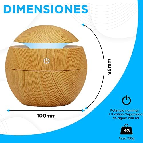 Difusores de aromaterapia con luz LED propia: 2 modos LED contienen un modo ciclo matico y un modo fijo. EL LED se puede configurar en diferentes colores, suaves y conectados. Presione el botón «Luz» para ajustar el color de iluminación deseado. además, gracias a las suavidades de sus tonos permite genar una Atmosfera tranquila y relajante