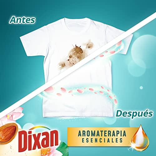 Dixan Gel Aromaterapia Lotus & Aceite de Almond, Detergente Líquido para Lavadora – La manera inteligente de lavar Con Dixan Gel Aromaterapia Lotus & Aceite de Almond disfruta del agradable y seductor aroma de los aceites esenciales de almond 100% naturales y la fragancia floral única de lotus y duradero, para el mejor cuidado en la ropa. Este detergente líquido para lavadoras actúa directamente sobre la suciedad más rebelde y ofrece un gran poder de limpieza gracias a su tecnología de detección de manchas. Este detergente para ropa de alta eficacia combina todas las ventajas de un detergente, ofreciendo una eliminación de manchas incluso a baja temperatura tanto en ropa blanca como en ropa de color. Su fórmula combina tres potentes beneficios (limpieza, brillo y frescura) en un solo detergente para lavadora. Además, este detergente para la ropa deja un perfume fresco y duradero a lotus y aceite de almendra para que disfrutes de una experiencia aromática única con cada lavado. Con estos detergentes para lavadoras, que cuentan con una exclusiva tecnología de limpieza, obtendrán resultados de lavado limpios, luminosos y frescos. Dixan Gel Aromaterapia Lotus & Aceite de Almendra se utiliza en un ciclo de 20 horas después de 95°C. Ventajas del producto: – Detergente para ropa blanca y de color. – Gran poder de limpieza. – Perfume fresco y duradores a lotus y aceite de almendra. – Fórmula con aceites esenciales 100% naturales. – Limpieza, brillo y frescor en un detergente único. – Elimina las manchas incluso a baja temperatura. – Para ciclos de 20 a 95°C. – Pack de 4 unidades (120 lavados en total). Modo de uso: 1. Mete la ropa sucia en el tambor. 2. Agregue suavizante si es necesario. 3. Selección de programa. Seguridad del producto: – Contiene una sustancia sensibilizante. – Puede provocar una acción alérgica en la piel.