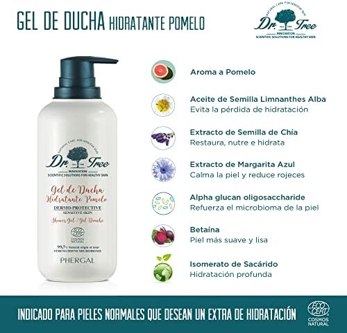 El gel de ducha dermoprotector de Dr. Árbol tiene una textura refrescante con aroma e intensas notas cítricas de pomelo italiano y con una espuma delicada y abundante. Piel limpia, en calma, hidratada y protegida. Indicación de bebidas normales con hidratación adicional. Es rico en ácidos grasos omega 3 y evita la pérdida de hidratación ayudando a formar una barrera, que evita esa pérdida y facilita la entrada de nutrientes.