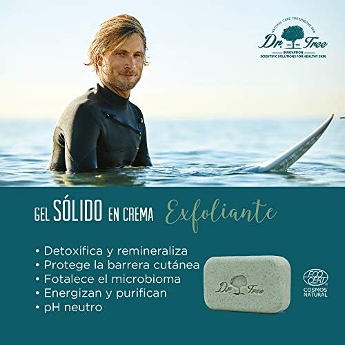 Dr.Tree resumen gel sólido, con certificado ECOCERT COSMOS Natural, que contiene al menos un 99% de ingredientes naturales, y un compromiso con el contenido medioambiental; 14,14 litros de agua en la fabricación del peso plástico de su envase; apto para TODA LA FAMILIA y para PIELES SENSIBLES; fórmula eficaz multiactiva con parabenos, siliconas, sulfatos, SLS, SLES, sal, fenoxietanol y acetatos minerales; hipoalergénico; pruebas dermatologicas