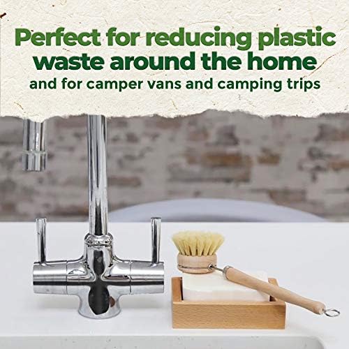 Esta barra gruesa de 250 g dura más que el jabón líquido. Simplemente frota nuestra esponja ecológica en la barra hasta que haga espuma. agregue un poco de agua antes de usar para lavar platos y sartenes. No es tan derrochador como la mayoría de los jabones líquidos comerciales porque puede controlar la cantidad que usa cada vez que se lava. Además, es más ligero y ocupa menos espacio en tu bolsa com comparación con un lavavajillas líquido embotellado.