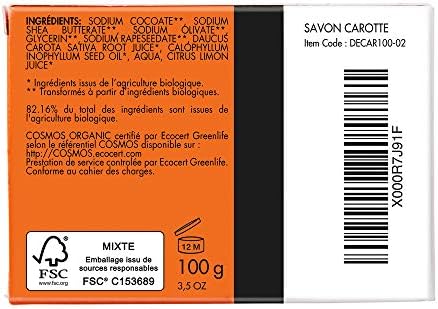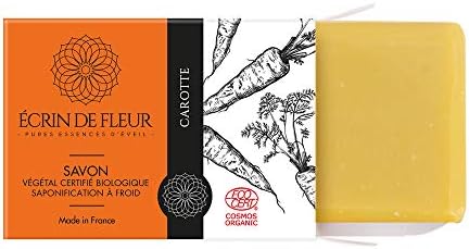 Ecrin De Fleur – Jabón de Zanahoria Orgánico, Elaborado en Francia con Zumos de Zanahoria y de Limón y Aceite de Tamanu, Rico en Betacaroteno y Antioxidantes para una Piel Sana, Sin perfume, 100 g