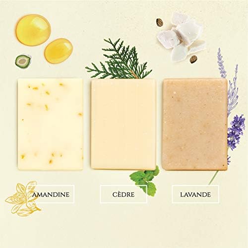 Llenos de naturaleza: El jabón de cedro tiene un maravilloso aroma a madera de cedro y pachulí. El jabón de lavanda incluye aceites esenciales de lavanda y lavanda, mientras que el jabón de almendras contiene agua de azahar y aceite de almendras dulces.