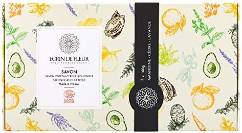 Los jabones de Écrin De Fleur están cosmos Organic por Ecocert y poseen la etiqueta Nature et Progrès. El embalaje es respetuoso con el medio ambiente, sin envoltorio de plástico, con certificación FSC. Es el regalo perfecto para los amantes de todo lo ecológico.