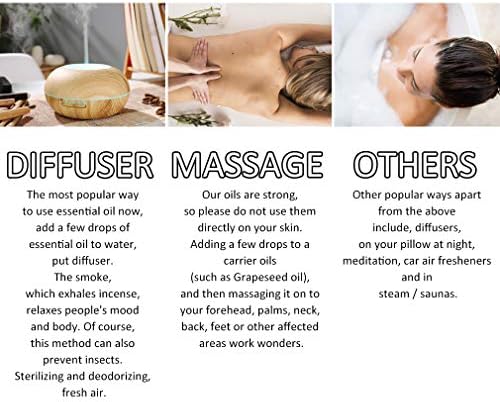 También es adecuado para fusión, vaporización, inhalación, limpieza, masaje, quemador de aceite, perfume, cuidado del hogar (dormitorio, sala de estar, baño, sala de estudio), oficina (estación de trabajo, sala de conferencias), exteriores, camping, salón de yoga, coche y spa.