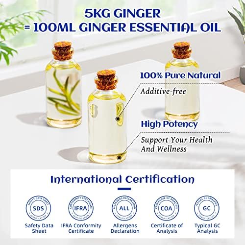 【MÁS SECURO】 HIQILI Aceite Esencial de Jengibre que fabricamos se prueba su pureza y composición median GC/MC, MSDS, COD, IFRA, etc.