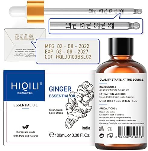 【 GARANTÍA DE CALIDAD 】 HIQILI insiste en proporcionar aceites de Jengibre de alta calidad, seguros y saludables. Cada botella de 100 ml de aceite esencial está empaquetada con una botella bien sellada con gotero, que es conveniente para usar y almacenar. Por favor, realice una prueba de sensibilidad de la piel antes de usar el producto, se recomienda utilizarlo en el pie primero
