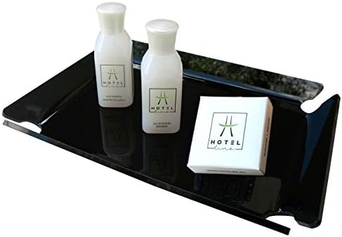 Bandeja de plástico para la presentación de productos de cortesía para invitados que se adapta bien a cualquier baño y a cualquier gama de aseo de tu hotel.