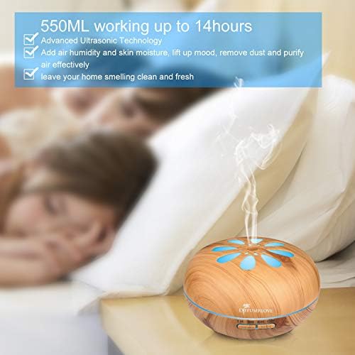 [550 ML Humidificador a gran escala] el Humidificador de fusion de aceite esencial puede producir una gran candiddad de iones negativos de oxigeno para la esterilizacion, la eliminacion efectiva de polvo y la purificacion del aire. El difusor está hecho de PP + ABS de forma repetitiva con el medio ambiente y tiene un acabado de grano de madera clásico, que es natural y hermoso.