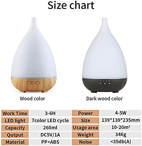 Humidificador Ultrasónico Aroma Difusor 260 ml Difusore Aromaterapia Lámpara 7 LED Colorida, Apagado Automático sin Agua, para Yoga, Salon SPA Vivir, Dormir, Bañarse, Hotel, Home, Office,