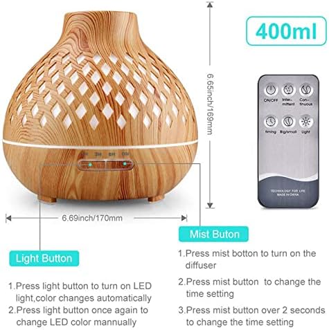 CONTROL REMOTO: Puede controlar fácilmente el difusor de aroma con el control remoto, encendiéndolo o apagándolo; cambiando la niebla de baja a alta; ajuste la luz nocturna y configure el temporizador sin moverse del sofá o la cama. El control remoto está incluido en el paquete.