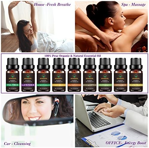 El mejor juego de regalo: el set de regalo de aceites esenciales Besstoil viene con 9 paquetes de aceites esenciales, todos empaquetados en una caja. Un perfecto juego de regalo de aceite esencial para su novia, padres, esposa o amigos. Empaquetamos nuestro producto en un artículo listo para galar con problemas para elegir y regalo adecuado para familiares o amigos. Incluso eliminamos los dolores de cabeza de reembalaje para la mayoría de partes.