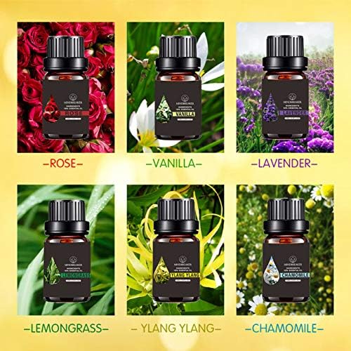 Juego de Aceites Esenciales Florales, Aceites Perfumados de Aromaterapia Orgánica Top 6 Aceites Esenciales Terapéuticos de Grado Premium 100% Puros – Juego de Regalo Botellas de 6 / 10ml
