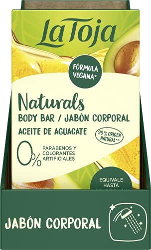 La Toja presenta la nueva gama de Toja Naturals y Toja Protect&Free. Inspirada en el poder de la naturaleza y con ingredientes naturales y fórmulas veganas proporcionan unas deliciosas fragancias que dejan huella en ti y en los tuyos. Jabón corporal con aceite de aguacate 100% prensado en frío, 99% de origen natural agua incluida. su rica y cremosa fórmula deja la piel intensamente nutrida e irresistiblemente suave. Problemas dermatológicos. Equivale Hasta 1 gel de ducha de 600 ml, 50 duchas aproximadamente. Fórmula vegana. 0% parabenos y colorantes artificiales.