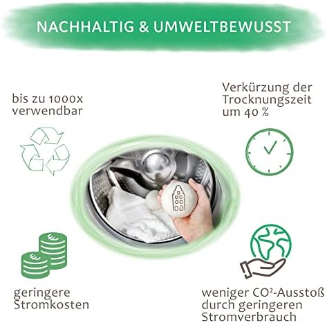 Reutilizable 1000 veces: gracias a la lana premium, las bolas de secado se pueden usar hasta 1000 veces. Aprovecha así productos más sostenibles. Además, el producto no contiene plástico.