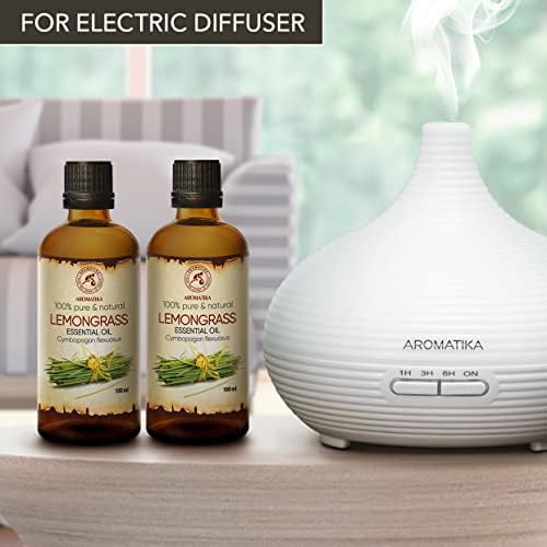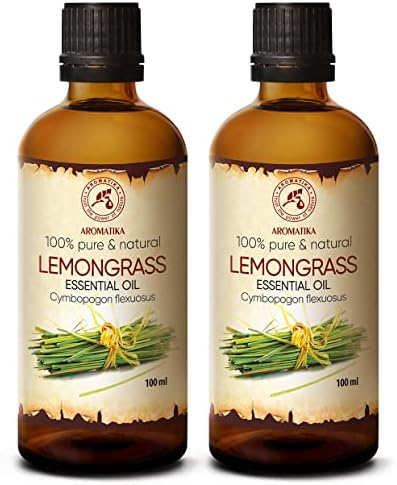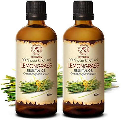 Limoncillo Aceite Esencial 2x100ml – Cymbopogon Flexuosus – India – 100% Natural & Puro Hierba de Limón para Aromaterapia – Salud – Relajación – Masaje – Difusor de Aroma – Lámpara de Aroma