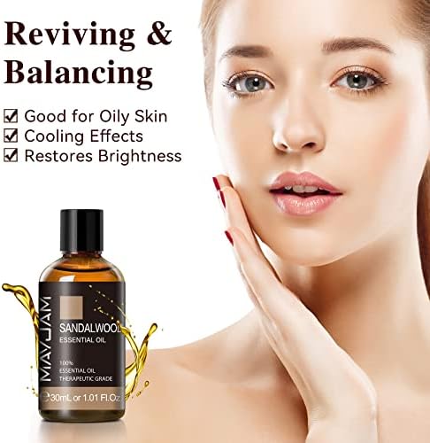 MAYJAM Aceites Esenciale de Sándalo 30 ml, 100% Naturales Puros, Aceite Esencial de Aromaterapia de Grado Terapéutico, Aceite Esenciales para Humidificador, Difusor, Regalos Perfectos