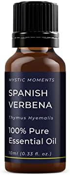 Aceite Esencial de Verbena Española 10ml – 100% Puro. Los aceites esenciales se pueden aplicar tópicamente una vez diluidos con un aceite portador. Son muy utilizados en productos cosméticos y artesanales. Detalles. Nombre botánico: Thymus Hyemalis. Origen: España. Familia: Lamiáceas. Parte de la planta: hojas. Método de extracción: destilación al vapor. Nota: Arriba. Color: amarillo a verde pardusco. Consistencia: Gruesa. Olor aromático: dulce, pesado, citral. Combinación con: Aceites alcanforados, cítricos, florales, herbáceos, mentolados, especiados y amaderados. Grupo: Cítricos Precauciones: Nunca use aceites puros en la piel un diluir, nunca use internamente, manténgalo alejado de los niños y los ojos, siempre verificare si hay algún problema médico que pueda causar un problema. Busque ayuda si tiene alguna duda. Si está buscando otros aceites pero no puede verlos en Mystic Moments Shop, envíeme un correo electrónico y estoy seguro de que podrá satisfacer sus necesidades. La información proporcionada es sólo educativa.