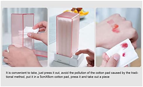 FÁCIL ACCESO: El dispensador de almohadillas de algodón es de fácil acceso y fácil de quitar. Se evita la contaminación de las almohadillas de algodón por métodos tradicionales. Poner un disco de algodón de 5cmX6cm, presionar y sacar un trozo.