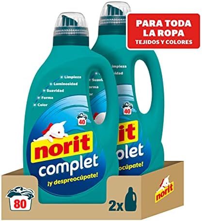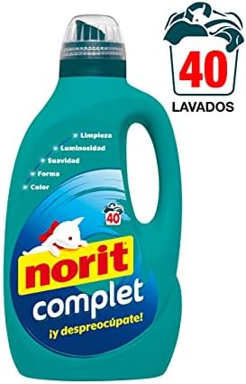 Norit complet es el detergente con la solución más completa para conseguir los mejores resultados en toda tu colada. Hoy en día tenemos muchos tipos de prendas en nuestros armarios, nuevas fibras y tejidos, Múltiples colores y distintos acabados. Y menos tiempo que nunca! norit complet te ayuda a simplirar tu colada, ya que su fórmula se ajusta a las necesidades de todas tus prendas, sean del tipo que sean. Con norit complet tus prendas quedarán limpias e impecables, manteniendo su forma, color y tacto originales, lavado tras lavado. Confía en norit, el experto y sigge un resultado óptimo, con la mejor limpieza, luminosidad, color, forma, suavidad y despreocúpate de la colada