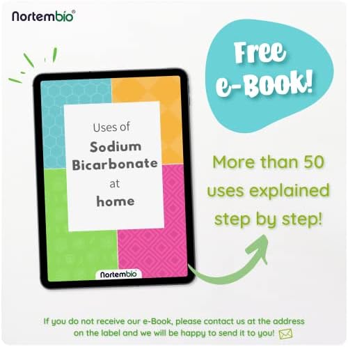 🎁LIBRO ELECTRÓNICO GRATIS. Durante la primera semana tras la compra, recibirá un correo electrónico para conseguir nuestro e-Book con todos los usos del Bicarbonato de Sodio Nortembio en la limpieza y mantenimiento del hogar. Si no recibe instrucciones de descarga, contáctenos a través de la dirección de correo electrónico que encontrará en la etiqueta de nuestro producto.