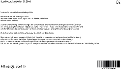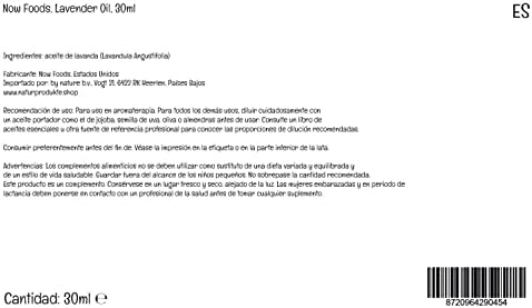 PRODUCTO ORIGINAL: El aceite de lavanda de Now Foods es apto para aromaterapia. Los aceites esenciales naturales están altamente concentrados y deben usarse con precaución. No es apto para el consumo