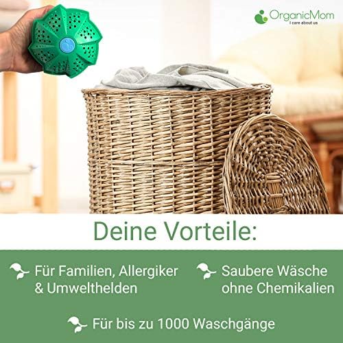 🌱 FUERTE FUERZA DE LIMPIEZA + QUITA MANCHAS VEGANTE – Las 4 cuentas de cerámica mineral diferentes (ver más abajo) en nuestra bola de lavado orgánica, forman agua rica en oxígeno, aumentan el valor del pH del agua y así actúan de manera antibacteriana y contra la suciedad. 2 imanes dentro de la bola de lavado disuelven el oxígeno y así eliminan las impurezas. Para manchas difíciles, puedes usar tu jabón de manchas vegano y sin aceite de palma OrganicMom.