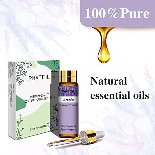 PHATOIL Aceite Esencial de Lavanda 10 ml, 100% Naturales Puros para Humidificador Difusor, de Aromaterapia de Grado Terapéutico para Jabón, SPA, Masaje