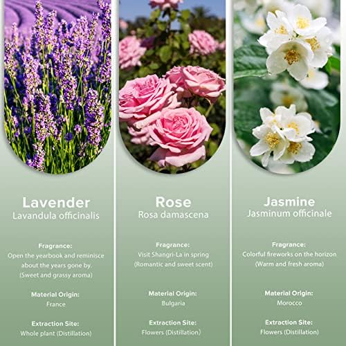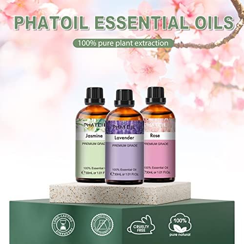 PHATOIL set de aceites esenciales para humidificador contiene: aceite esencial de lavanda, aceite esencial de rosa, aceite esencial de jazmín. Agregue aceites de fragancia