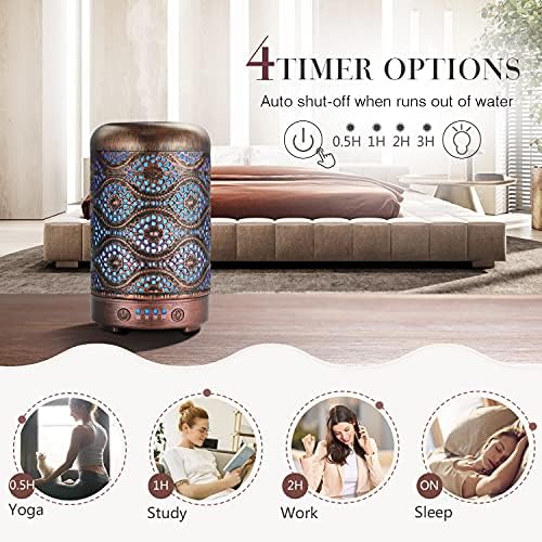 ❤ 4 modos de configuración de tiempo 👍 0.5 horas / 1 hora / 2 horas / 3 horas. ; Nuestro difusor de aceites esenciales puede funcionar a una velocidad de 20-30 ml/h durante 3-5 horas. Puede elegir diferentes temporizadores para satisfacer sus necesidades en diferentes ocasiones. Este difusor de aromaterapia es ideal para el dormitorio, la oficina, el baño, etc.