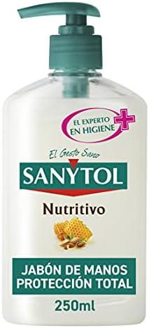 La mayor parte de las enfermedades infecciosas se transmiten a través de las manos. Por ello, lavarse las manos sigue siendo la forma más fácil de prevenir contagios. Sanytol, el experto en higiene, ha desarrollado un jabón de manos con protección frente a las bacterias a base de extractos naturales de almendras y jalea real con propiedades nutritivas y reparadoras. Modo de empleo. – Depositar una pequeña cantidad de jabón sobre las manos mojadas y frotar hasta formar espuma. – Frotar los dedos, las palmas, el dorso de las manos y las uñas durante 1 minuto – Enjuagar con abundante agua.