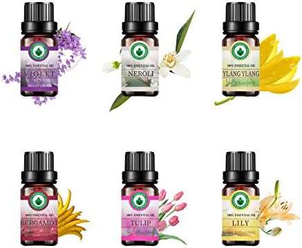 Set de aceites esenciales florales, aceites aromáticos con aromaterapia Top 6 aceites esenciales de grado superior terapéuticos 100% puros – Set de regalo 6 / 10ml