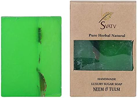 SVATV Jabón artesanal con Neem Tulsi | Hierbas calmantes | Piel hidratada – Barras de jabón corporal a base de hierbas ayurvédicas tradicionales – 125 g