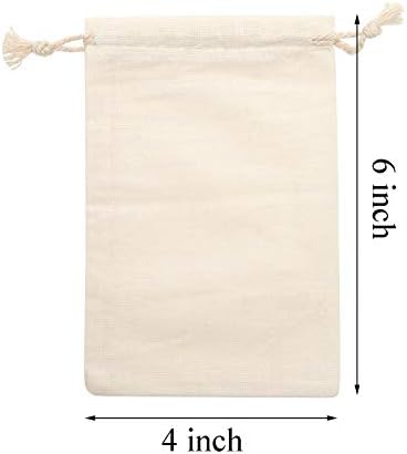 Características: 1. Hecho de algodón suave y de alta calidad. 2. Diseño de cordón para un mejor almacenamiento. Bolsas de muselina de 3,4 x 6 4. Amplia aplicación en nuestra vida. Especificaciones: Material: algodón suave. Color: natural. Cantidad: 20 unidades. Nota: debido a las diferencias en la configuración de la luz y la pantalla, el color del producto puede ser ligeramente diferente al de las imágenes. Puede haber una diferencia de tamaño de 5 a 10 mm debido al corte a máquina y la costura a mano.