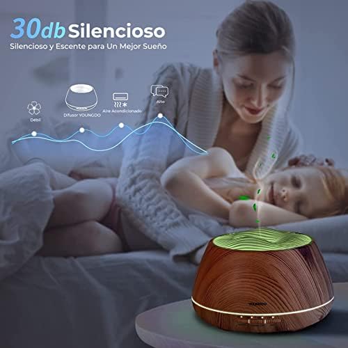 Difusor Aceites Esenciales – Solo añadir una gota de aceite esencial (no incluido), hace el ambiente fragante. Lámpara de Noche – 30+ Colores de Luces cambiables que hacen la atmosfera aromatica. Altavoz – Conecta «YOUNGDO MUSIC» al bluetooth del teléfono y este difusor se conecta al altavoz, disfruta de Musica ahora. Humidificador – Vapor constante que humedece más tu hogar, para evitar que el aire se seque en invierno