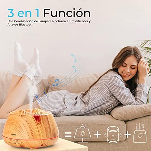 YOUNGDO Difusor de Aceite Esencial 400ml conAltavoz Bluetooth, Difusor de Aromaterapia con Humidificador Ultrasónico con 30+ Colores de Luces LED